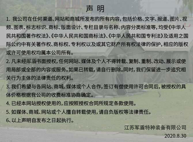 版權(quán)所有:江蘇軍盾特種裝備有限公司    網(wǎng)站備案號(hào):蘇ICP備16064441號(hào)-1    網(wǎng)站制作維護(hù):卓越凱欣    本網(wǎng)站部分圖片來源于網(wǎng)絡(luò),如有侵權(quán),請(qǐng)告知?jiǎng)h除